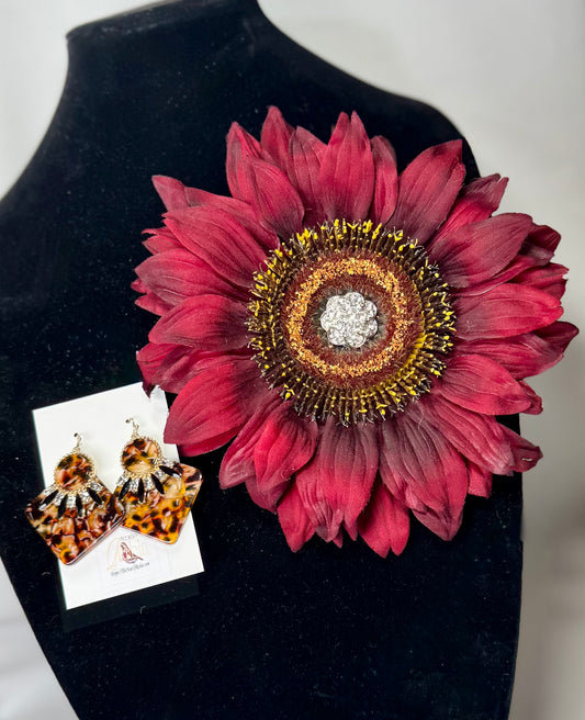 “Deep Sunflower” Floral Brooch & Earrings Set